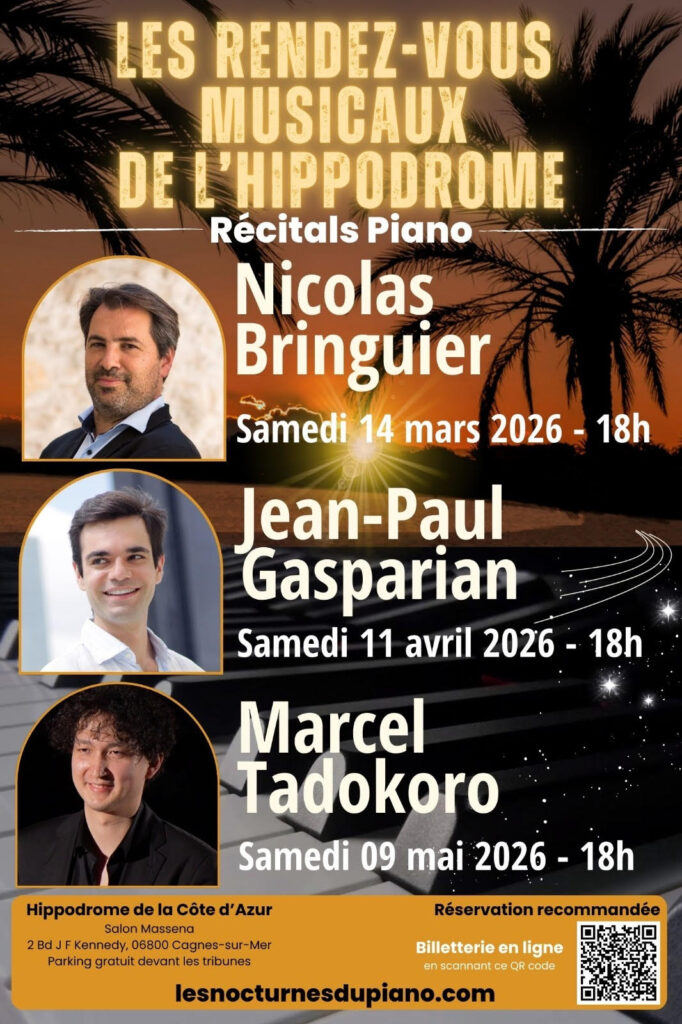 Les Rendez-Vous Musicaux de l’Hippodrome Après quatre soirées d’exception en 2025, Rendez-vous les samedis 14 mars, 11 avril et 9 mai 2026. 📍Salon Masséna – Hippodrome de la Côte d’Azur A vos agendas ! Rendez-vous musicaux Hippodrome Nicolas Bringuier. Samedi 14 mars – 18 heures. Récital Chopin Programme : Frédéric CHOPIN (1810-1949) 1ere […]