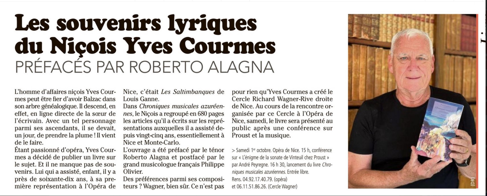 Les souvenirs lyriques d’Yves COURMES, président du Cercle Richard Wagner Rive Droite